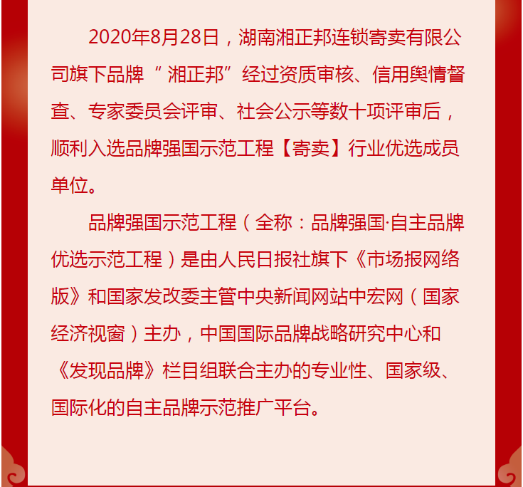 熱烈祝賀湘正邦入選寄賣行業(yè)優(yōu)選成員單位